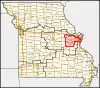 Missouri's second congressional district is in the eastern portion of the state, primarily consisting of the suburbs south and west of St. Louis, including Arnold, Town and Country, Wildwood, Chesterfield, and Oakville.[3] The district includes all of Franklin County and portions of St. Louis, St. Charles, and Warren counties.[4] Following redistricting in 2010, the St. Louis Post-Dispatch reported that the district now included more Democratic-leaning voters than it had its 2001–2010 boundaries, but still leaned Republican as a whole.[5] The latest U.S. Census Electorate Profile for the 2nd congressional district estimates there are 581,131 citizens of voting age living in 293,984 households.[6] A primarily suburban district, MO-02 is the wealthiest of Missouri's congressional districts.[3]