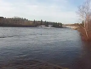 The Mistassini River is a river in central Quebec, Canada, draining into the north-western portion of Lac Saint-Jean. It is 298 kilometres (185 mi) long and has a watershed area of 21,900 square kilometres (8,500 sq mi).[1] Its source is between Eau Froide and De Vau Lakes in the northernmost portion of the Rivière-Mistassini Unorganized Territory, just east of the vast Baie-James Municipality.