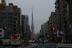 Mita Dōri (三田通り) is a four lane avenue which forms the border between Mita 2-chōme and Shiba 5-chōme in Minato, Tokyo, Japan. Formerly occupied by a shopping center, a large number of office buildings and condominiums are now found there. Tokyo Tower is a northern extension of Mita-dori, and it can be seen from anywhere along Mita Dōri. Along the west side of the road is Saisekai Central Hospital (済生会中央病院, Saiseikai Chūō Byōin), the Mita International Building, and Keio University.[1][2] Mita Library, the Mita Police Station, and Fushimi Sanpō Inari Shrine are found along the east side.[3]