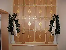 A mitamaya (御霊屋, literally mitama "soul [of the dead]" + ya "house"; also called, otamaya, tamaya, or soreisha 祖霊社, or "Reibyo" 霊廟)[1] is an altar used in Shinto-style ancestor worship, dedicated in the memory of deceased forebears. It generally has a mirror symbolizing the spirits of the deceased or a tablet bearing their names and is used not only to enshrine blood relatives, but also to honor respected non-family members.[2]