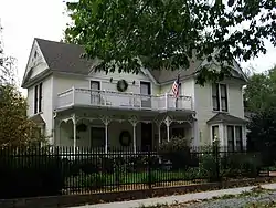 The Mitchell–Ward House is a historic house at 201 North Nelson in Gentry, Arkansas. Its main block is an L-shaped wood-frame structure, with a cross-gable roof, and a large gable above the porch in the crook of the L. The three front-facing gable ends have decorative Folk Victorian jigsawn trim and different styles of siding, and the porch features turned posts, a spindled balustrade, and a decorative frieze. The interior has also retained all of its original woodwork. The house was built in 1897, and is one of the finest Queen Anne/Folk Victorian houses in the city.[2]