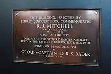 Plaque marking the centre's opening by Douglas Bader.