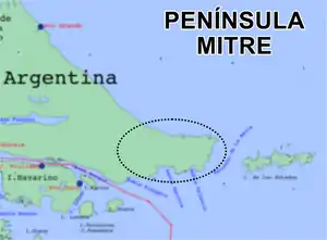 The peninsula was named by explorer Julio Popper to honor Bartolomé Mitre.