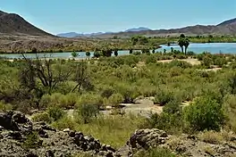 La Laguna was a mining town that was in existence for a short time from 1860 to 1862. The town had a few merchants and a ferry across the Colorado River that served placer miners in the vicinity. When the La Paz gold rush began, La Laguna was abandoned. Its former site now lies beneath Mittry Lake.