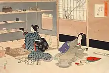 Mizuya (水屋, "water room") is the term for the preparation area in a Japanese tea house (chashitsu) or attached to any venue used for the Japanese tea ceremony. For instance, the area used for preparation during outdoor tea ceremonies is also called the mizuya. The term mizuya can also refer to purificatory fonts at shrines and temples, as well as to storage cupboards for use in kitchens. This article, however, focuses on the tea ceremony mizuya.