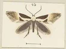 {{cite book}}:|journal=ignored (help) - 1 2 Francis Walker (1864), List of the specimens of lepidopterous insects in the collection of the British Museum. XXX: Tineites, London, p. 1008, Wikidata Q108264250