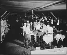 Principles for a mobile medical unit and their implementation were established through trial and error in the dental field during World War II by Major Vincent P. Marran, a medic in the United States Third Army.[6] The effectiveness of his efforts were widely admired and supported by the command structure, but no formal designation was established. The first trials for what would become MASH Units were established by the U.S. Army during World War II.[3] The necessity for the U.S. Army to have more convenient treatment centers was shown by the long logistics of the stretched out supply lines during World War II. These units were known as "Auxiliary Surgical Groups" and would care for the wounded much closer than permanent hospitals, making them hospitals.[3] In the early 1940s, Colonel Michael DeBakey and his colleague were selected to give recommendations on how to provide surgical care for the U.S. Army.[3] The result was the ASG. Although these units were very inexperienced, they were incredibly effective resulting in five ASG units being created in 1943; this resulted in the ASG units being able to move along with the U.S. Army units located in Italy and was the basis in which MASH would directly come from.[3]