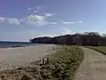 Moesgård Beach is a public Blue Flag beach in Aarhus Municipality in Denmark. The beach is located in the southern outskirts of Aarhus in the Marselisborg Forests on the Bay of Aarhus in the suburb of Højbjerg. Helgenæs lies across the bay to the east, a bit inland to the west is the Marselisborg Deer Park and to the north is the Varna Palace. The beach area is some 1000 meters long and between 25 and 40 meters wide. It is a white sandy beach with occasional rows of boulders extending into the sea, for coastal erosion protection. Moesgård Beach is popular for sunbathing and swimming due to the shielding effects and scenic views of the nearby forests on the steep hillsides to the west. The beach has a single jetty extending some 20 meters into the sea, offering a platform to jump from or relax on. The Beach is open year-round for everyone at no charge.[1]