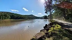 The Mogo Creek (officially designated as a river[1]) rises below Mount Finch on the southern slopes of the Hunter Range, about 5 kilometres (3.1 mi) north-west of Mount McQuoid. The river flows generally south, then west, then south, joined by two minor tributaries, before reaching its confluence with the Macdonald River near St Albans Common, north of St Albans. The river descends 208 metres (682 ft) over its 31-kilometre (19 mi) course.[3]