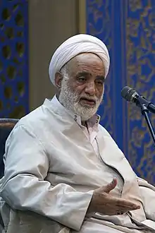 Mohsen Qara'ati (Persian: محسن قرائتی) is an Iranian Shia cleric who was born in 1945[1][2][3][4] in the city of Kashan, and his father was Ali Naqi (Qara'ati). Mohsen Qara'ati who is commonly known as "Ayatollah Qara'ati"[5] or "Hujjat al-islam Qara'ati,"[6][7][8] was appointed as the representative of Sayyid Ruhollah Khomeini (the founder and previous leader of Islamic Republic of Iran) at the "literacy movement organization" in Iran in 1981.[9]