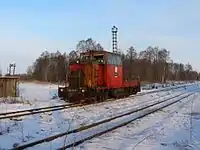 The Mokeiha–Zybinskoe peat railway (Russian: Узкоколейная железная дорога Мокеиха-Зыбинского торфопредприятия) is located in Yaroslavl Oblast, Russia. The peat railway was opened in 1950, and has a total length of 15 kilometres (9.3 mi) and is operational as of 2016. The track gauge is 750 mm (2 ft 5+1⁄2 in) and operates year-round.[1] 57°49′34″N 37°23′10″E / 57.82601°N 37.38602°E
