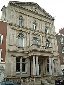 One of the most important building is Freemasons' Hall,[1] home of the Grand Lodge of Ireland designed by the architect Edward Holmes of Birmingham and completed in 1866 on the site of the townhouse of the first grandmaster, the Earl of Rosse.[3]