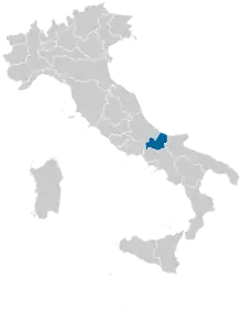 Molise is one of the 29 constituencies (Italian: circoscrizioni) represented in the Chamber of Deputies, the lower house of the Italian parliament.[2] The constituency currently elects 2 deputies, less than any other except Aosta Valley. Its boundaries correspond to those of the Italian region of Molise. The electoral system uses a parallel voting system, which act as a mixed system, with half of seats allocated using a first-past-the-post electoral system and half using a proportional method, with one round of voting.[3]