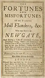 - ↑ Full title: The Fortunes and Misfortunes of the Famous Moll Flanders, &c. Who was Born in Newgate, and during a Life of continu'd Variety for threescore Years, besides her Childhood, was Twelve Year a Whore, five times a Wife (whereof once to her own Brother) Twelve Year a Thief, Eight Year a Transported Felon in Virginia, at last grew Rich, liv'd Honest, and died a Penitent