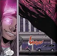 Molly makes a cameo appearance in The New Avengers vol. 2 #7, as one of the applicants Luke Cage and Jessica Jones interview as a possible nanny. Molly begins by saying she knows she's underage, but she is cut off.[6] When Daken, the psychopathic son of Wolverine, seeks the Runaways in Los Angeles, Molly pins him down and angrily asks why he's invaded their home.[7]
