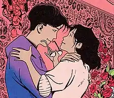 ![]() Portion of a panel from The Books of Magic: Reckonings, showing Molly in an embrace with Tim Hunter. | |