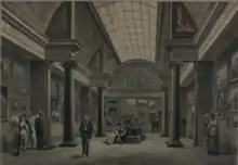 After the dowager queen's death, the mansion was acquired by another affluent merchant, Constantin Brun, a German trader who had become royal administrator of trade in the Danish West Indies and was also building a successful private trading empire. His wife was the writer and salonist Friederike Brun who had a large international network which included prominent names such as Johann Wolfgang von Goethe, Friedrich Schiller, August Wilhelm Schlegel, Johann Gottfried Herder, Wilhelm Grimm, Bertel Thorvaldsen, and the Swiss writer Madame de Staël with whom she formed a close friendship.[3] Her literary salons mainly took place at Sophienholm during the summer season but in winter time at the mansion in Bredgade. Among the Danish artists who regularly attended her salons were Jens Baggesen, Adam Oehlenschläger, Johanne Luise Heiberg, C.E.F Weyse, B. S. Ingemann and Kamma Rahbek.