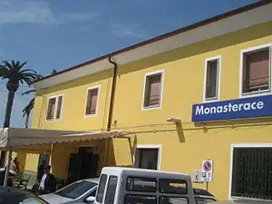 Monasterace-Stilo (Italian: Stazione di Monasterace-Stilo) is a railway station in Monasterace, Italy. The station is located on the Jonica railway . The train services are operated by Trenitalia.