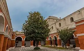 Its first facilities were destroyed in 1600 and 1604 by earthquakes,[1] but after these the community of Santa Catalina experienced a definitive rebirth, thanks to the entry of many catalinas of high lineage, from rich Arequipa families of that time,[1] its current building corresponds to the last third of the 17th century.[1]