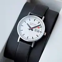 Mondaine is the trademark for a series of watches made by the Swiss company Mondaine Watch Ltd. The company was founded by Erwin Bernheim. Initially, he exported wristwatches manufactured by different Swiss watchmakers. Subsequently, he started manufacturing lever watches at Remonta AG, a subsidiary of Mondaine in Biberist, Switzerland.[1]