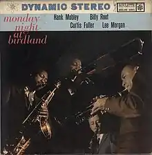 Monday Night at Birdland is a live album which was recorded at Birdland in 1958 by tenor saxophonists Hank Mobley and Billy Root, trombonists Kai Winding and Curtis Fuller, and trumpeter Lee Morgan. It was first released by the Roulette label.[1][2][3] Symphony Sid wrote the liner notes.[4]