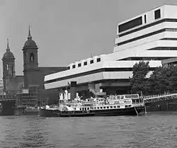 When completed in 1978, it was the largest telephone exchange in Europe. Riverbank House was next door to the east. The architectural style was not unlike the Royal National Theatre. The International Control Centre was officially opened on 3 May 1984.