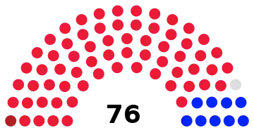 Parliamentary elections were held in Mongolia on 29 June 2016.[1] The governing Democratic Party lost to a landslide victory of the Mongolian People's Party, retaining only 9 of 76 seats in the Great Khural.[2] While they just lost under 2% of the popular vote, a new electoral law passed by the Democratic Party itself when in Government to promote two-party politics,[3] together with a 14% rise of the MPP, ended up making them lose 25 of 34 seats. As a result, the MPP secured a supermajority with 65 of 76 seats.