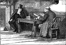 Monks is one of Dickens's more melodramatic characters - totally evil without even the shred of affection that Bill Sikes has for his bull terrier, Bullseye.[2] He is physically unattractive, has a dark red mark on the left side of his jaw, is subject to severe epileptic fits, and completely cowardly, not willing to outwardly be associated with any form of crime (this is not because he is a moral being, but because he fears being caught).[3] Dickens keeps his motives and his true identity a total secret until nearly the end of the novel, thus surprising the reader with an unexpected revelation that adds complications to the plot.