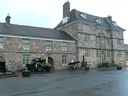 More formally known as the Castle and Regimental Museum, Monmouth, the Monmouth Regimental Museum (pictured) is located on Castle Hill in Monmouth, Wales, at the highest elevation of the town centre.[1][2] It is within the 19th-century wing which extends from Great Castle House (pictured), a 17th-century, grade I listed building just northwest of Agincourt Square.[3][4] Great Castle House is one of 24 blue plaque buildings on the Monmouth Heritage Trail.[5][6] In 1673, it was constructed from the ruins of Monmouth Castle by the 1st Duke of Beaufort, then the 3rd Marquess of Worcester, as a town house while his other homes were being rebuilt.[4][7] The three-storey building is currently home to the Royal Monmouthshire Royal Engineers (Militia), the most senior regiment in the British Territorial Army.[4][8]
