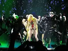 Gaga performing "Monster" during the 2010 shows of The Monster Ball Tour. She is seen here doing the Michael Jackson inspired choreography.