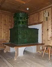 Green tiled stove in the Lukas-Tschofen-Stube in Gaschurn