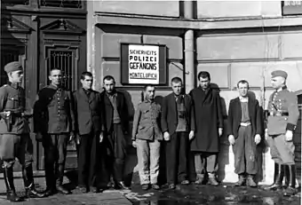 ![]() Prisoners of the Montelupich Prison in 1939 after the invasion of Poland by Nazi Germany | |