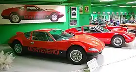 Monteverdi Hai 450 GTS works replica (front) and Hai 450 SS factory replica (rear) at the Monteverdi Museum (Basel, Switzerland)