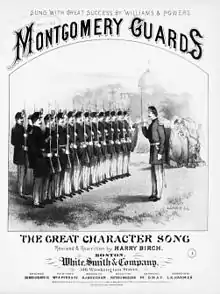 In 1878, White, Smith & Company published a song titled "Montgomery Guards." By this time, Irish Americans made up more than 22% of Boston's population.[5] They had proven their loyalty by fighting for the Union, which had helped to dispel some of the prejudice against them. With strength in numbers, and the rise of ward bosses, they had also begun to be a political force in Boston. If the lyrics of "Montgomery Guards" are any indication, the new company was treated with far more respect than the original had been: