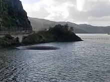 Prior to that, the last time the spillway was active was February 16, 2017. After a number of storms had caused the lake level to rise 35.5 inches (90 cm) since January 1, 2017, the reservoir was on the cusp of spilling once again at 439.2 feet (133.9 m).[16] Eager to witness this event, a number of local boaters and recreation enthusiasts generated enough wake to cause the reservoir to spill, albeit briefly, at 1:45 p.m. on February 13, 2017. Lake Berryessa reservoir filled and ran into its glory hole spillway for the first time in over a decade on February 16, 2017, at approximately 3:00 p.m. PST .[17]