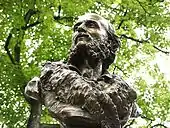Tombstone of Vaslav Nijinsky in Cimetière de Montmartre in Paris. The statue shows Nijinsky as the puppet Petrouchka.