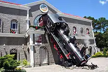 On 22 October 1895, the Granville to Paris and Montparnasse express, operated by Chemins de fer de l'Ouest, was made up of steam locomotive No. 721 (a type 2-4-0, French notation 120) hauling three luggage vans, a post van, and six passenger coaches.[1] The train had left Granville on time at 08:45, but was several minutes late as it approached its Paris Montparnasse terminus with 131 passengers on board. In an effort to make up lost time,[1][2] the train approached the station faster than usual, at a speed of 40–60 km/h (25–37 mph), and when the driver attempted to apply the Westinghouse air brake, it was faulty or ineffective.[1][3][4] The locomotive brakes alone were insufficient to stop the train, the momentum carried it into the buffers, and the locomotive crossed the almost 30-metre (98 ft) wide station concourse, crashing through a 60-centimetre (24 in) thick wall, before falling onto the Place de Rennes 10 metres (33 ft) below, where it stood on its nose.