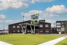 ![]() Rainbow colored windows on the building's exterior, 2020. | |