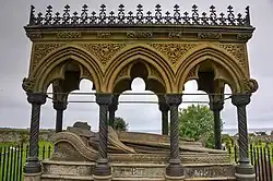 The Monument to Grace Darling, in the churchyard of St Aidan's Church, Bamburgh, Northumberland is a Victorian Gothic memorial. The monument was designed by Anthony Salvin, with later renovations by Frederick Wilson, C. R. Smith and W. S. Hicks. Grace Darling was born on 24 November 1815, the daughter of the lighthouseman at Longstone Lighthouse. In 1838, Darling became a national heroine when she and her father rescued nine people from the wreck of the SS Forfarshire, a ship that had run aground off Big Harcar, an island off the Northumbrian coast. Darling died of tuberculosis aged 26 in 1842, and the monument was raised some distance to the north of her grave to make it visible to passing sailors,[1] at the west edge of the churchyard in the same year. It is a Grade II* listed structure.