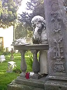 The cemetery contains many artistic memorials and burials of notable people, including the mayor of Cagliari Ottone Baccaredda, the historian Pietro Martini, the canon and archaeologist Giovanni Spano (buried in a tomb he himself designed and built, reusing archaeological remains[1]). Other interesting tombs and chapels were built between the end of the 19th and early 20th centuries by artists such as Giuseppe Sartorio, Tito Sarrocchi, Cosimo Fadda, Andrea Ugolini, Emanuele Giacobbe, Giovanni Pandiani and others, providing a wide variety of tastes and styles, from neoclassical through Realism and Symbolism to Art Nouveau.