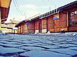 Citizen Urban Houses Bajmak are two houses located in the Marash Complex, on the left stream of Lumbardhi i Prizrenit river in Prizren.[25] They were built in the 18th century by local skillful craftsmen.[25] They were constructed with different materials as stone, clay, combinations of timber frames and mud bricks.[25] Their floors, stairs and roof construction are made by timber.[25] Roofs are covered with clay tiles, while the facades are plastered with mud.[25] The buildings comprise a ground floor and a first floor, and a garden.[25] In their interior it can be noted characteristic timber-lined ceilings and wooden cupboards.[25]