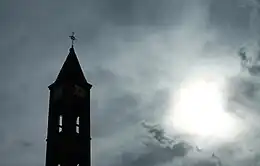 Sahat Kulla (The clock tower) is the city's clock, built in the 19th century by Jashar Pashe Gjinolli.[56] It is 26 meters high and in hexagon's shape.[56] The original object was damaged by the fire, but was reconstructed later. It's protected by the state since 1867.[56] In 2001 its original bell, which was brought from Moldavia, was stolen.[56] KFOR changed its old mechanism with a new electric one.[56] Considering Kosovo's problems with electricity supply, the clock tower barely tells the right time.[56]