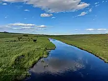 Moose Mountain Creek is a river[3] in the Canadian province of Saskatchewan. Its source is the Chapleau Lakes near Montmartre and it is a tributary of the Souris River, which, in turn, is a tributary of the Assiniboine River. The whole system is part of the Red River watershed, which is part of the Hudson Bay drainage basin and in a region called the Prairie Pothole Region of North America, which extends throughout three Canadian provinces and five U.S. states. It is also within Palliser's Triangle and the Great Plains ecoregion.[4]