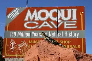 Moqui Cave was once used by Anasazi people as a shelter or food store, according to archaeological digs in the area.[2][5] It was rediscovered by white settlers in the 19th century, and served as a speakeasy in the 1920s during Prohibition.