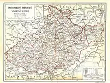 After the 1848 revolutions, political districts (politický okres, politische Bezirke; formally Bezirkshauptmannschaften) were established, which were organised into two Kreise/kraje – Brünn and Olmütz.[6]