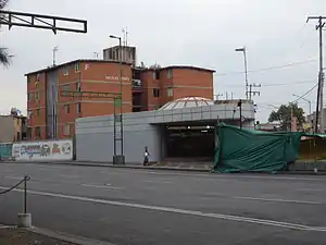 The station logo depicts the profile of José María Morelos y Pavón, second instigator of the War of Independence of 1810.[2][3][4] Its name refers to the neighborhood which it serves.