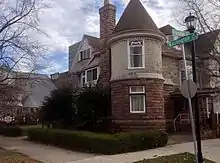 It was built in 1895, and is a 2+12-story, Queen Anne style dwelling. The first story is of sandstone ashlar and the second story is sheathed in wood shingles. It features a wraparound porch and round corner tower topped by a conical roof.[3]:64