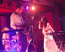 Kibby provided keys and arrangements for M83 on their fifth full-length release, Saturdays = Youth, and co-wrote the songs "Kim & Jessie", "Up!", "Too Late" and "Skin of the Night".[6] Subsequently, she toured with the band throughout Australia, Europe and the United States in 2008. She continued to tour with M83 in 2009 as they opened for Kings of Leon in the UK, The Killers on their US tour and for some dates of Depeche Mode's Tour of the Universe. In 2011, Kibby contributed to M83's sixth full-length album Hurry Up, We're Dreaming; providing vocals, keyboards and arrangements. She co-wrote the songs "Intro", "Midnight City", and "Reunion".[7] On collaborating with Anthony Gonzalez, she stated, "I take a lot of inspiration from watching him work and working with him."[8] In December 2015, it was revealed that Kibby was no longer part of M83.[9]