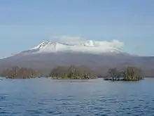 Mori, along with the town of Nanae, shares a coastline on Lake Ōnuma (5.3 square kilometres (2.0 sq mi)). Ōnuma, connected to Lake Konuma in Nanae, is technically a shallow pond. Ōnuma and Konuma, which sit at the southern foot of Mount Komagatake, were created when mudflows from an eruption of the mountain dammed the Orito River.[9][10]