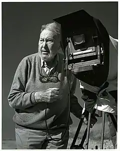 With his varied Navy photography experience, his many years of study, and intimate knowledge of his equipment, materials and darkroom techniques, Baer was well-qualified to take on any photographic assignment that came along. That confidence also allowed him to concentrate on the photographic task at hand, "... to interpret and thus to fully realize the potential for maximum expression ..." in his photographs.[2] In evaluating a potential photographic subject, Baer thought both in esthetic and organizational terms but also in the technical challenges he would face in actually making the photograph. His assistant once watched Baer as he stared at a subject tree muttering, 'I am looking at the Pyro in the tree trunks [for the negative] and the Amidol [for the print] in the leaves'.[7] He already was thinking of the technical problems he would have to solve in exposing the negative to get the tones he wanted in the final print.